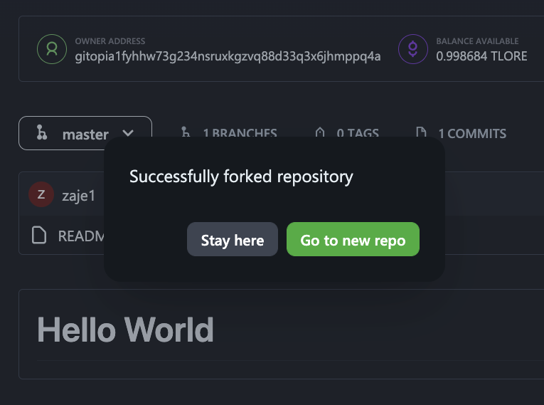 On the next prompt, clicking on Go to the new repo will take you to your forked repository.