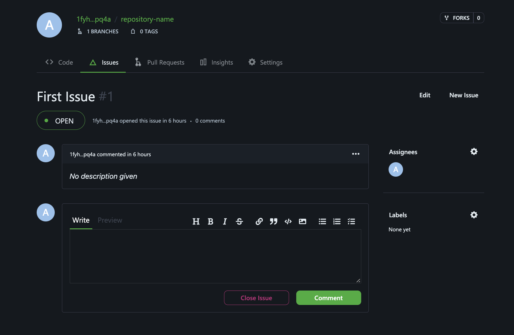 - If you're a project maintainer, you can assign the issue to someone, or apply a label.